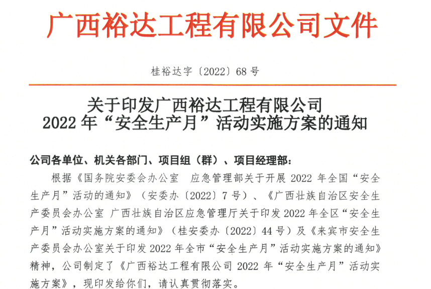 收到通知后公司积极响应贯彻落实并发布了《关于印发安博web版登录入口2022年“安全生产月”活动实施方案的通知》要求公司全体人员认真深入学习贯彻习近平总书记关于安全生产重要论述,加强活动组织部署。宣传贯彻安全生产法,强化主体责任落实。开展全员安全培训,分类强化警示教育。广泛开展宣传,营造良好安全生产氛围,以优异成绩迎接党的二十大顺利召开。