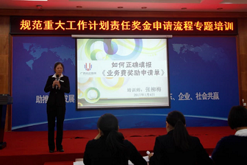 为了更好地规范2017年重大工作计划责任奖金申报流程,总结梳理2016年责任奖金申请提交过程中存在的问题,并帮助各申请部门提高责任奖金申请提交的工作效率,集团培训中心于2017年1月4日下午在集团七楼大会议室组织开展了规范重大工作计划责任奖金申请流程专题培训。参训对象为各责任部门责任奖金制表人及文员,共七十多人。本次培训很荣幸地邀请到督考法务审计中心·督考办副主任张柳梅女士为学员们授课。