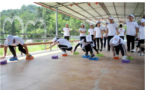 紧接着第二个游戏摸砖过河,主要是为了提高员工的耐力、行动速度及大脑的反应能力。