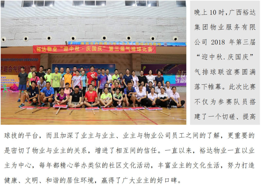 球儿架起友谊桥梁-裕达物业第三届 “迎中秋.庆国庆”气排球比赛圆满结束