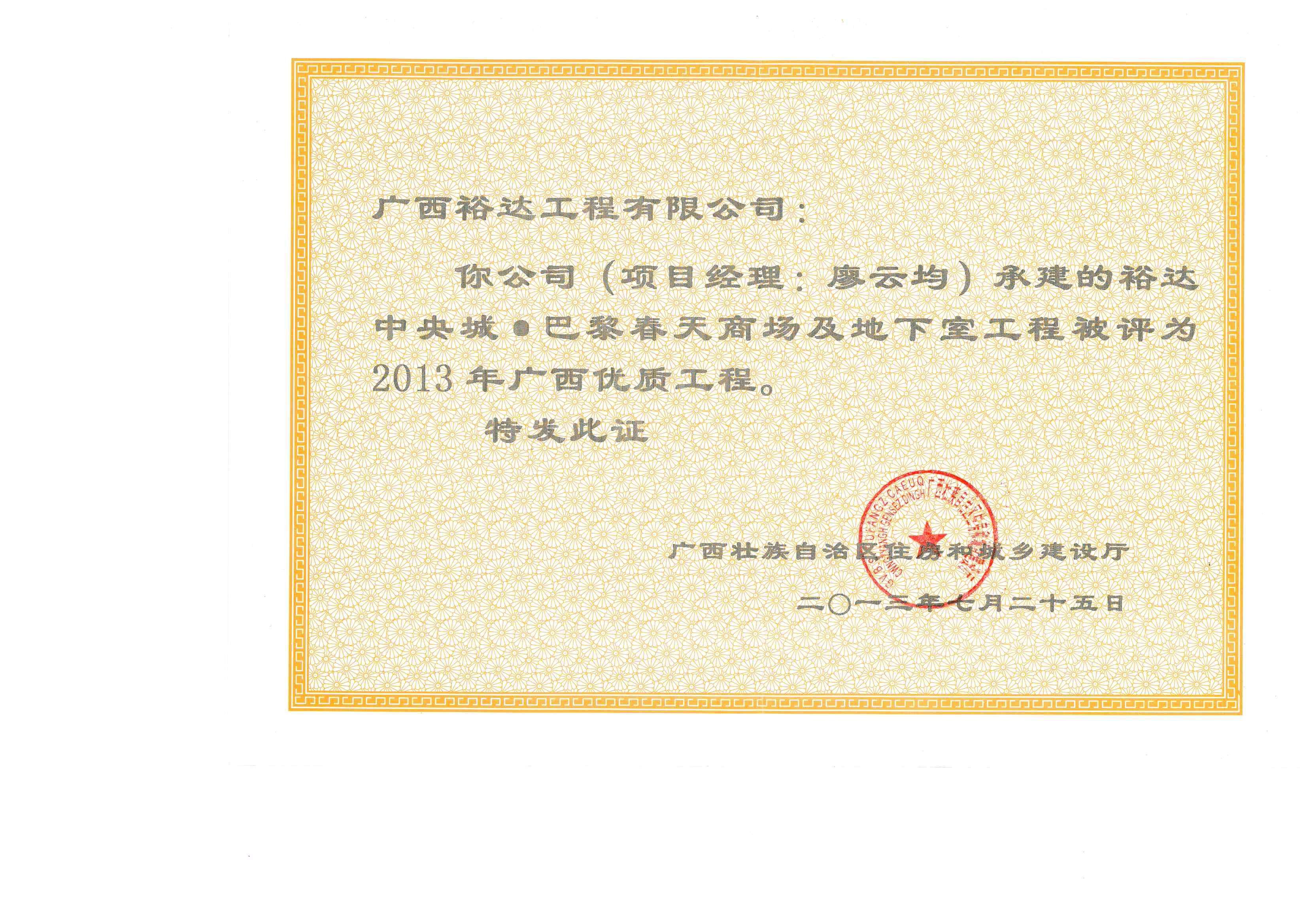 2013年广西优质工程