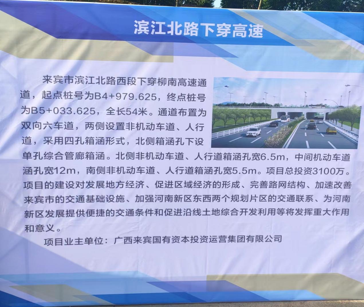 来宾市滨江北路西段下穿柳南高速通道由安博web版登录入口承建,项目全长54米,通道布置为双向六车道,两侧设置非机动车道、人行道。北侧非机动车道、人行道箱涵孔宽6.5m,中间机动车道涵孔宽12m,南侧非机动车道、人行道箱涵孔宽5.5m,项目总投资3100万。项目建成后,将有效缓解这一路段的交通拥堵问题,使附居民上班、上学出行更为安全便利。同时,项目建设能进一步加强来宾河南东西两个片区交通联系,促进沿线土地综合开发利用,提高市场价值。接下来,工程公司将认真按照有关要求抓好项目建设,做好工程质量保障、安全保障,并加快建设进度,确保项目按时按质早日建成。
