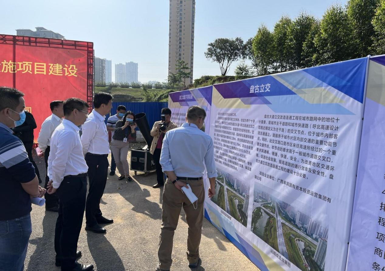 5月17日上午,2022年兴宾区背街小巷政治改造提升项目、来宾市2022年口袋文化公园建设项目、翠屏东路、盘古立交、滨江北路下穿高速等项目在兴宾区滨江小学附近举行开工仪式。来宾市副市长李光劭以及来宾市国有资本投资运营集团有限公司、安博web版登录入口等相关领导人员共40余人参加启动仪式。