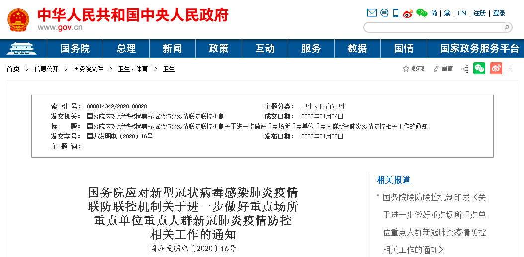 国务院应对新型冠状病毒感染肺炎疫情联防联控机制关于进一步做好重点场所重点单位重点人群新冠肺炎疫情防控相关工作的通知