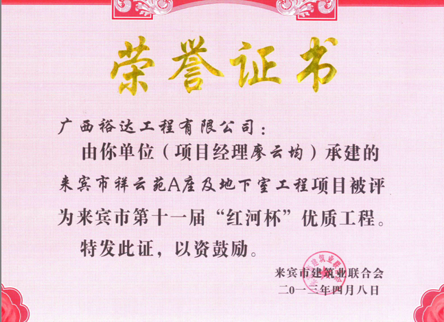 2013年来宾市第十一届“红河杯”优质工程