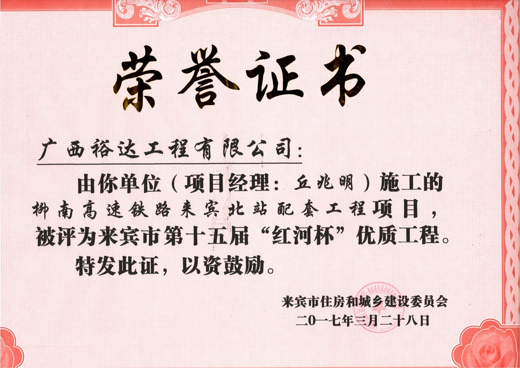 2017年来宾市第十五届“红河杯”优质工程