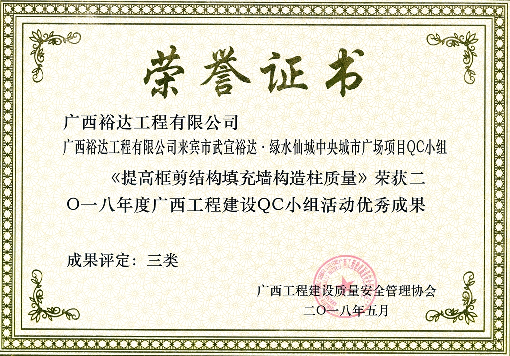 2018年度广西工程建设QC小组活动优秀成果