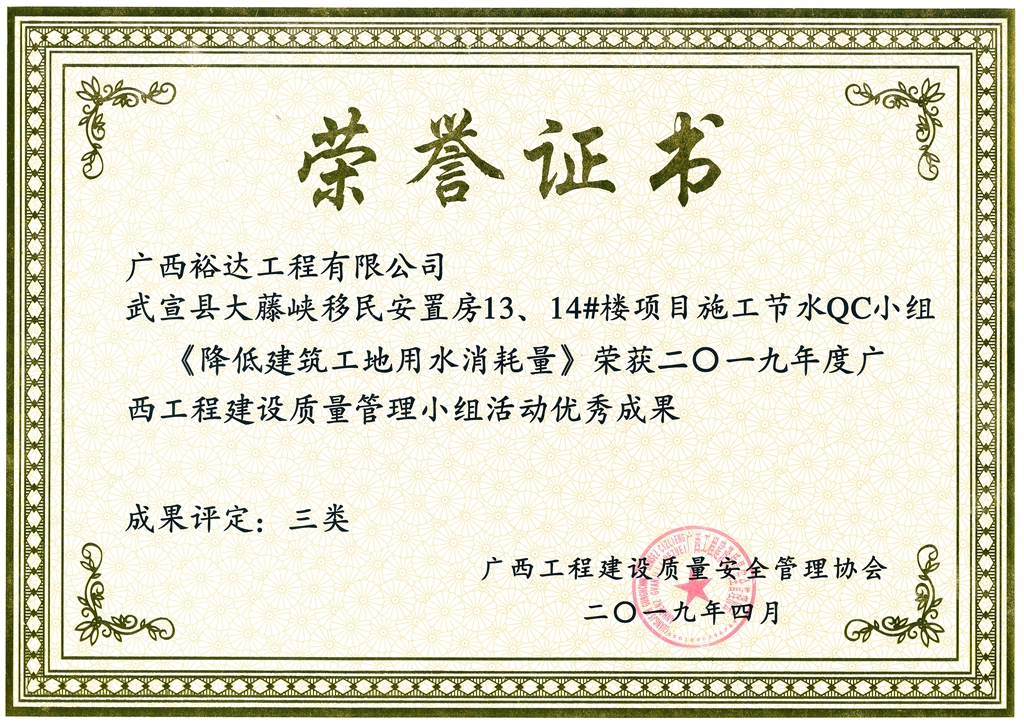2019年度广西工程建设质量管理小组活动优秀成果