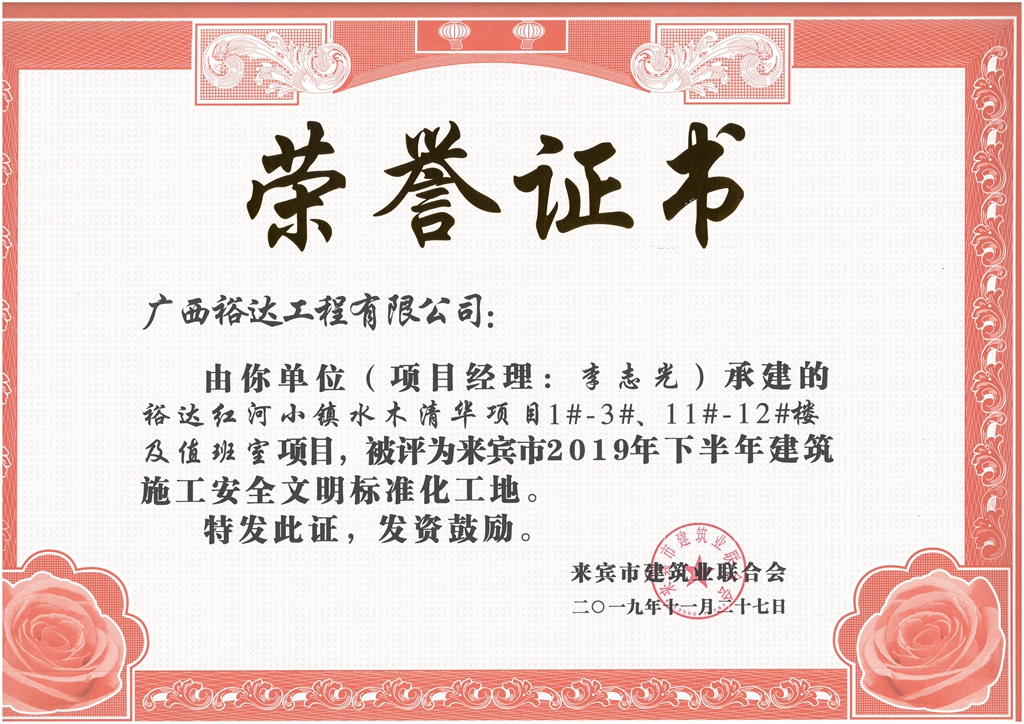 下一篇:榆林春天7#楼、8#楼及地下室项目被评为来宾市2019年下半年建筑施工安全文明标准化工地(项目经理:韦冬)